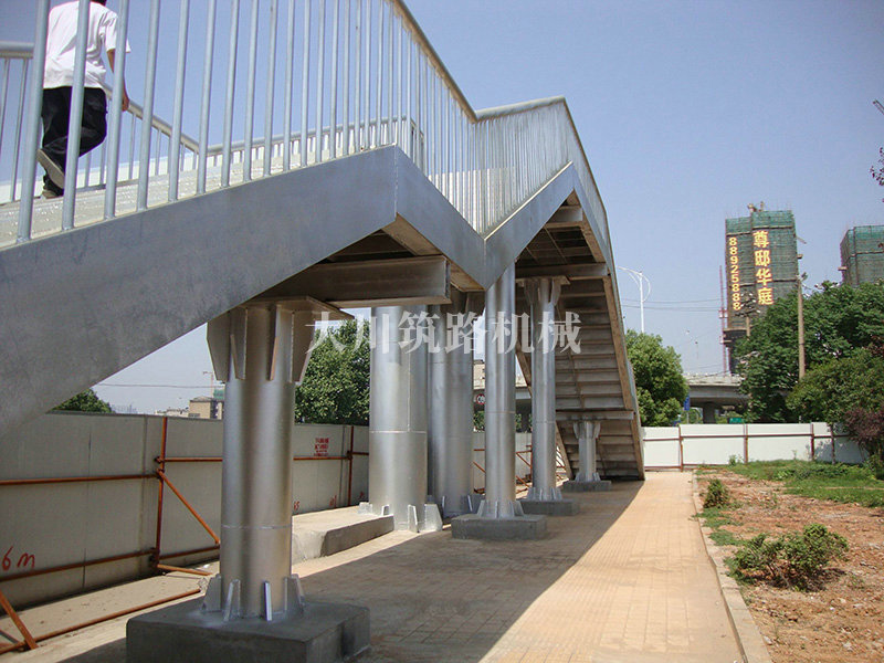 特點:本鋼橋主梁采用標準的“321鋼橋”現(xiàn)場安裝并用朔板包邊,梯道用型鋼、鋼板在廠內(nèi)加工好現(xiàn)場拼裝,達到安裝便捷、美觀、舒適的要求。本鋼橋安裝工期緊,安裝條件有限,大都只能得用晚間在封鎖交通的情況下安裝。